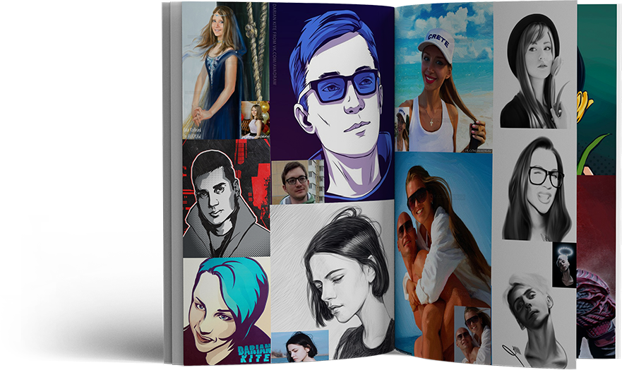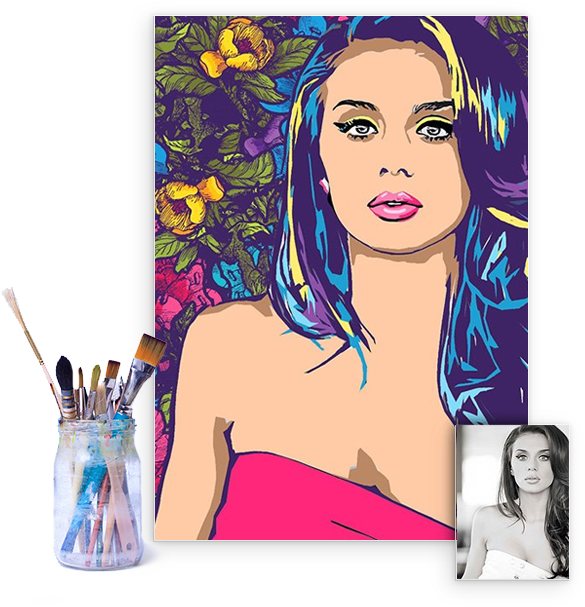 фон, поменять одежду, наряды, сделать цветную картину с черно-белого фото, а также заказать картину с
